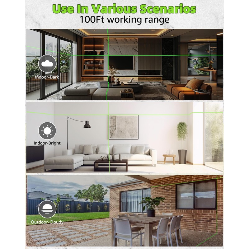 - New Green Diode Technology: With advanced Germany Oscram's green diode technology, Huepar's green laser levels are brighter, more accuracy and longer lifetime than other laser lines on the market. Recommend use in the light intensity is 14000lux environment