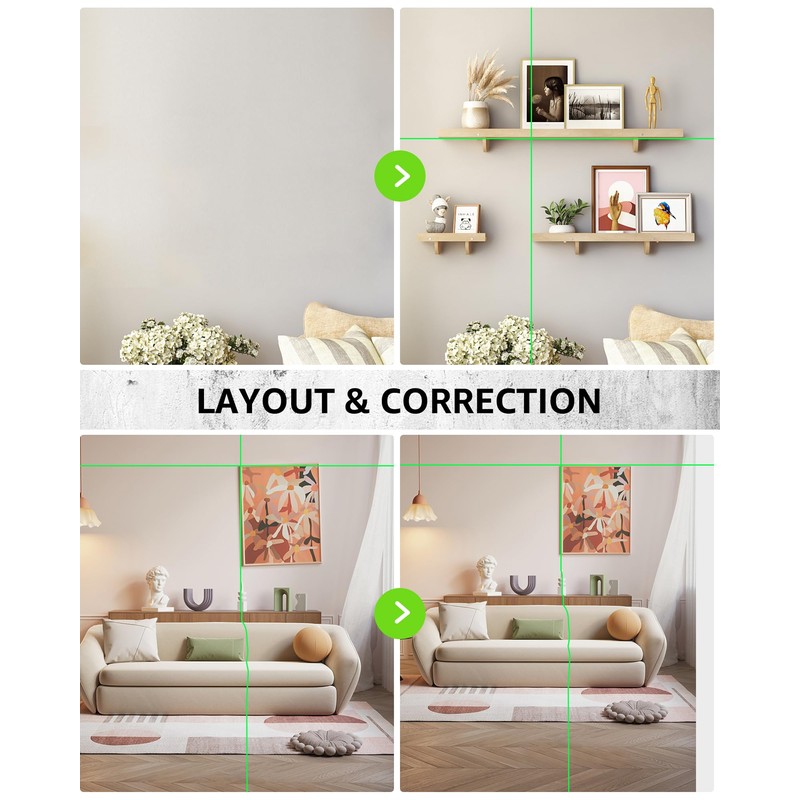 - Compact and Handy: With its soft grip, light weight and plam-sized design, you can carry out the laser level 9011G easily for work as ceiling installation, lighting fixtures, photo frames aligning and wall tiling down to floor tiling etc.
