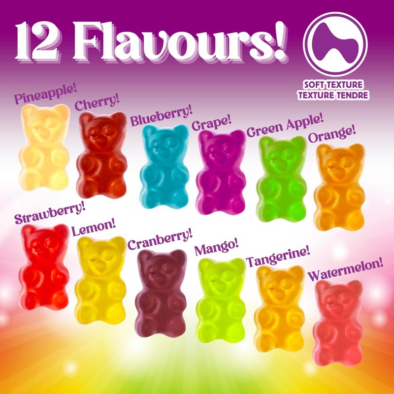 Huer - Gummy Bears 3 Pack,12 Fruit Flavours: Lemon, Green Apple, Cranberry, Strawberry, Mango, Tangerine, Grape, Cherry, and more - 180g Bag (Pack of 3)