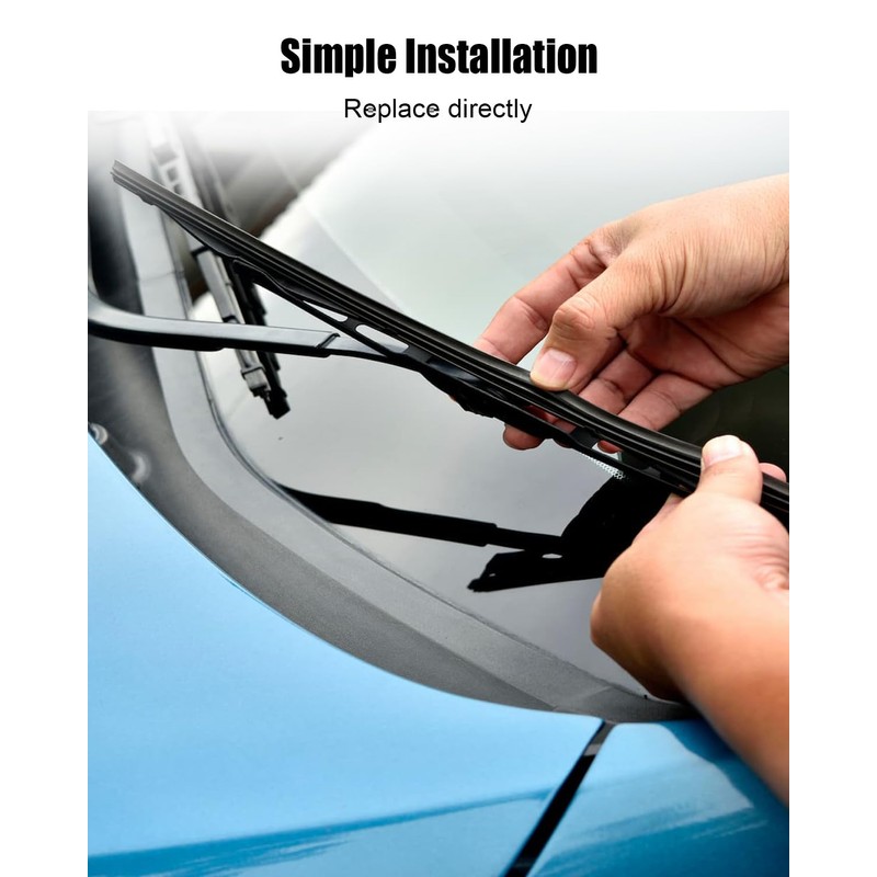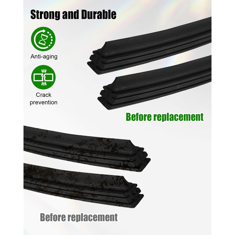 - Strong and Durable: Selected high-performance rubber material with excellent heat and cold resistance, whether under scorching sun or cold wind, front windshield wiper can maintain flexibility and adhesion, and is not easily aged or cracked, it has more stable performance, effectively extending replacement cycles and reducing maintenance frequency