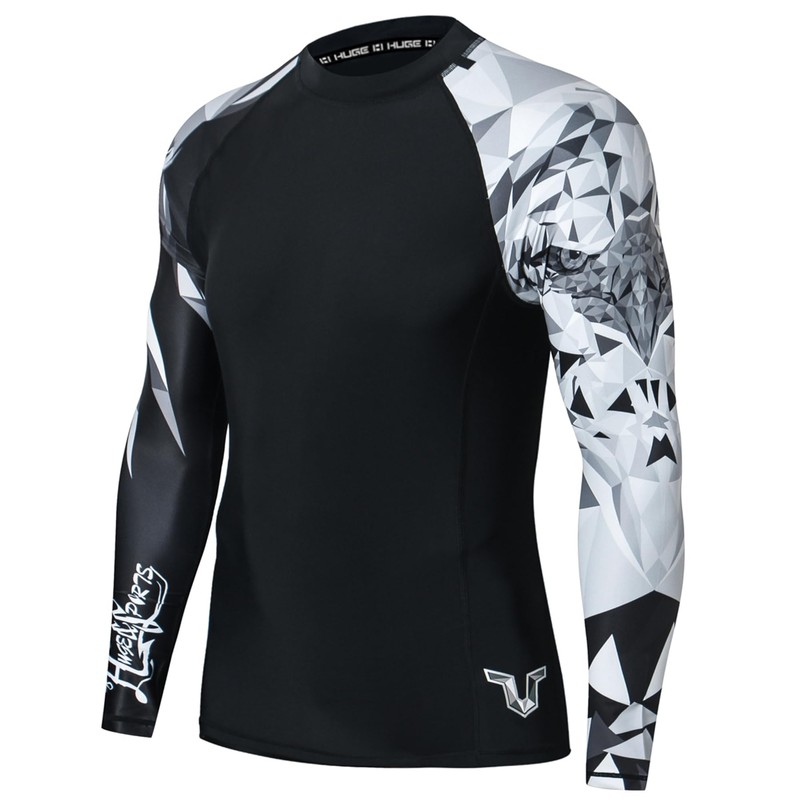 HUGE SPORTS Wildling Series UV Protection Quick Dry Compression Rash Guard for Men Eagle S
