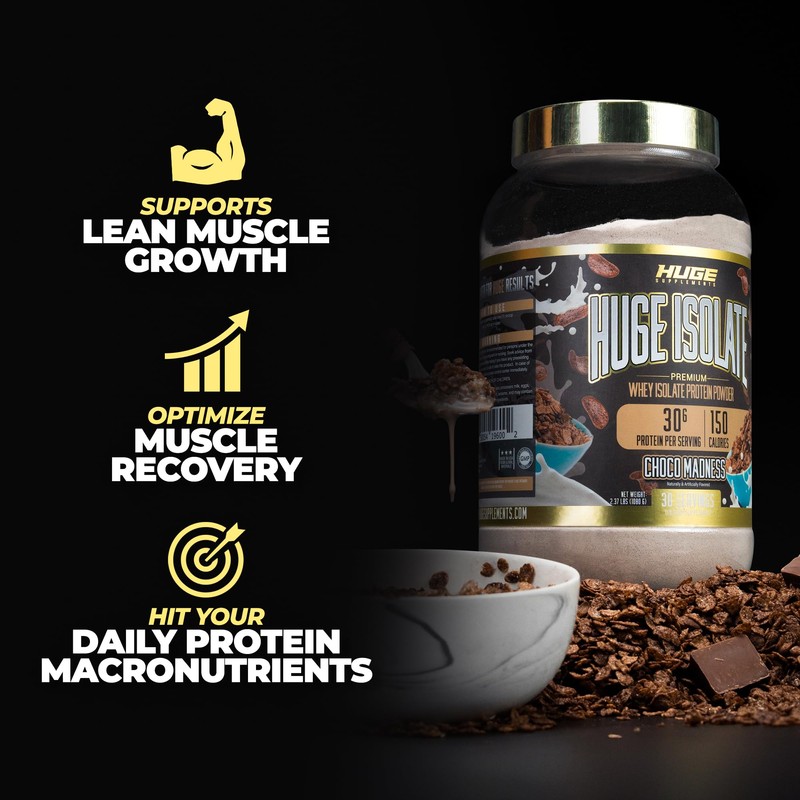 - EASY TO MIX AND VERSATILE: Huge Isolate is easy to mix with water, milk, or other beverages, making it a convenient and versatile protein source that can be used in smoothies, shakes, baked goods, and more. Indulge in the delectable flavors of our premium whey protein isolate powder, offering a delightful and satisfying taste experience with every sip.