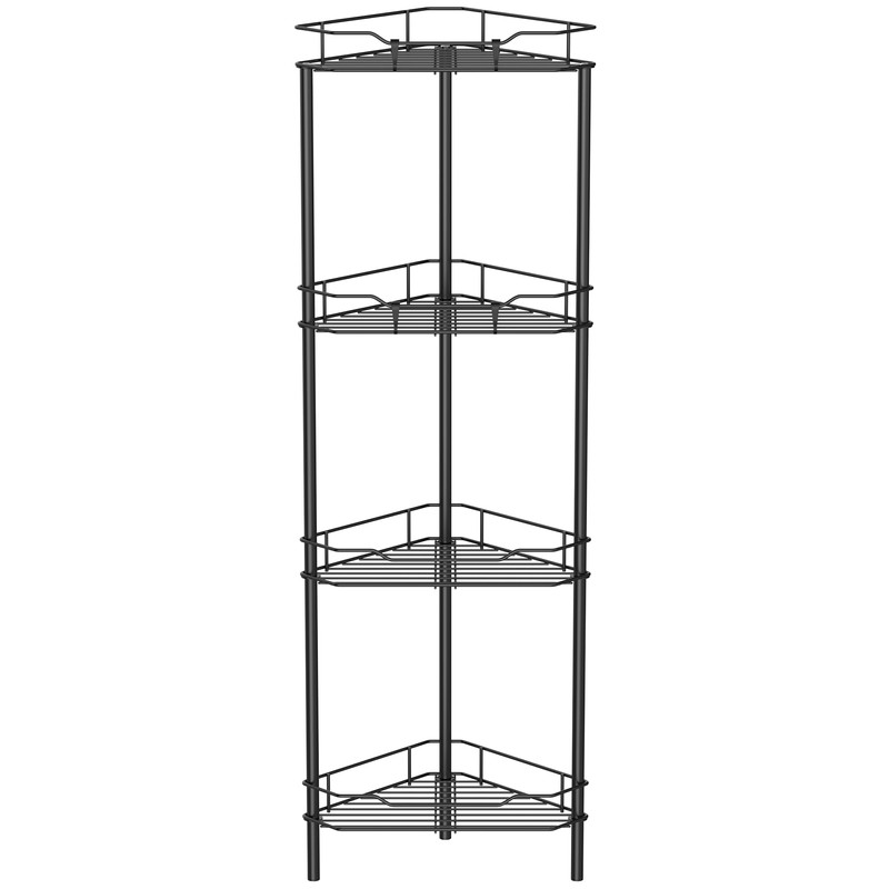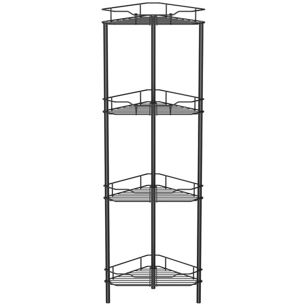 HuggieGems 4 Tier Floor Standing Corner Shower Caddy Organizer Shelf with Hooks, Bathroom Shelves Stand Rack, Black