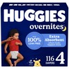 - Huggies Overnites Size 4 Diapers: 116 overnight diapers (2 Packs of 58), size 4 (22-37 lbs)