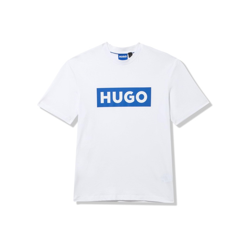 HUGO Logo Stripe Cotton Crew Neck T-Shirt White Salt Large