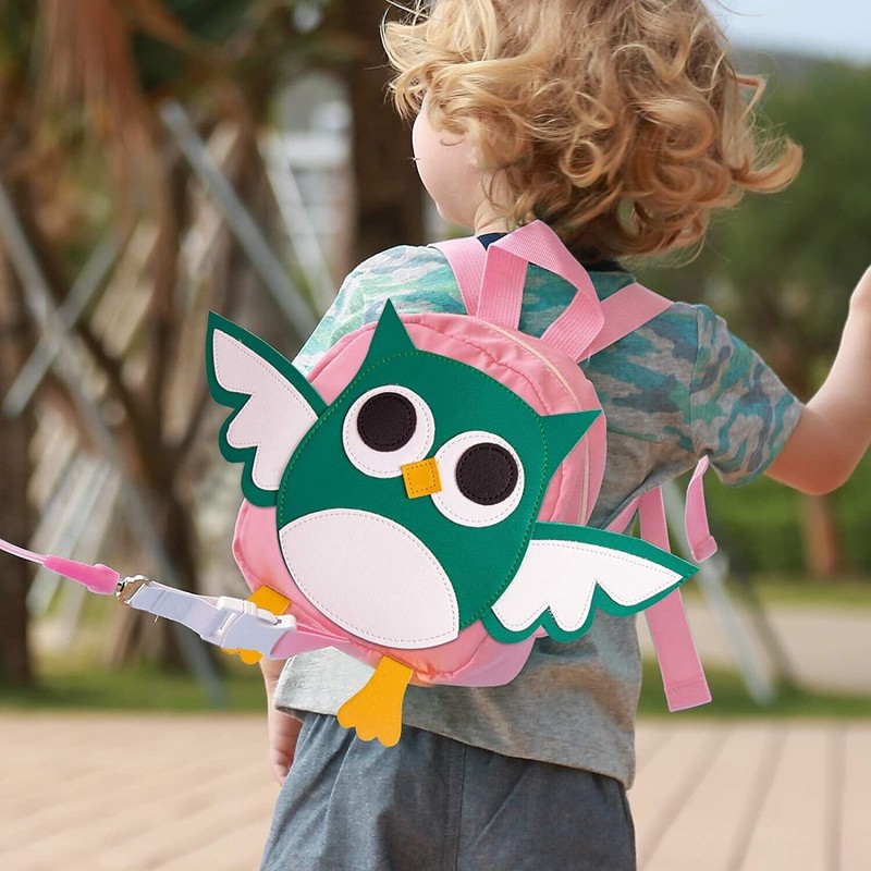 HUGVIDAS Cute Kid-Toddler Backpack with Detachable Safety Harness Green Owl