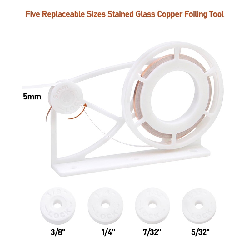 HUIKANGSHENG Stained Glass Foiler, Five Replaceable Sizes Stained Glass Copper Foiling Tool