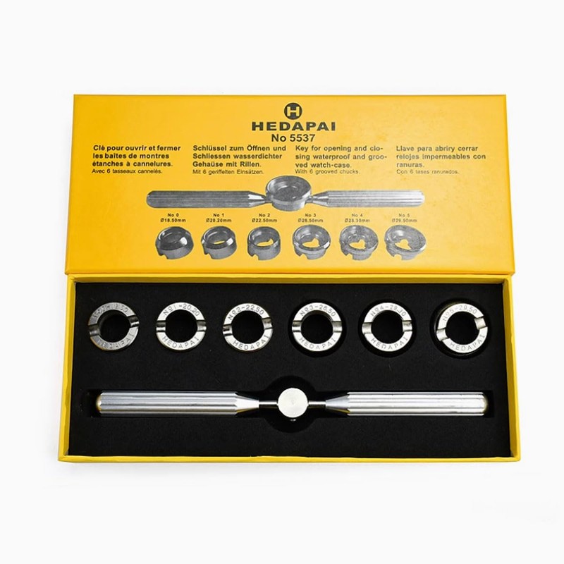 - UNIVERSAL COMPATIBILITY: Our case opener included a wrench and six different sizes of fluted grinders(0.73"/18.50mm, 0.79"/20.20mm, 0.88"/22.50mm, 1.04"/26.50mm, 1.11"/28.30mm, 1.16"/29.50mm), works with a wide range of watch case backs, including snap-on and screw-down types