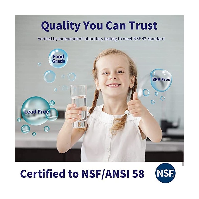 • 【食品グレードの素材】業界をリードする薄膜複合材料(TFC)膜で作られており、無毒で安定した性能を備えています。 滑らかな接触面は汚れの蓄積を防ぎ、高い水流を確保します。