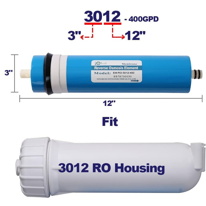 Huining 400GPD RO膜 3012-400 住宅用 逆浸透膜 浄水器 カルトリジェ 交換用 家庭用 飲料水 ろ過システム 家庭用 シンク下 浄水器