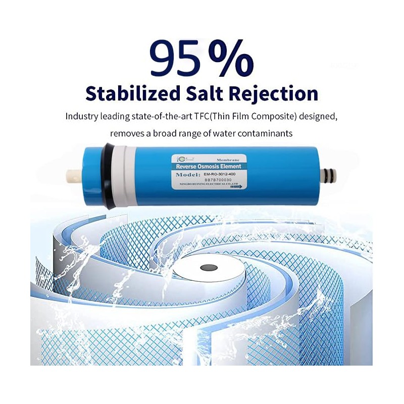 • 【高い透過性と安定した脱塩率】一日の浄水能力は400GPDに達し、脱塩率は95%です。