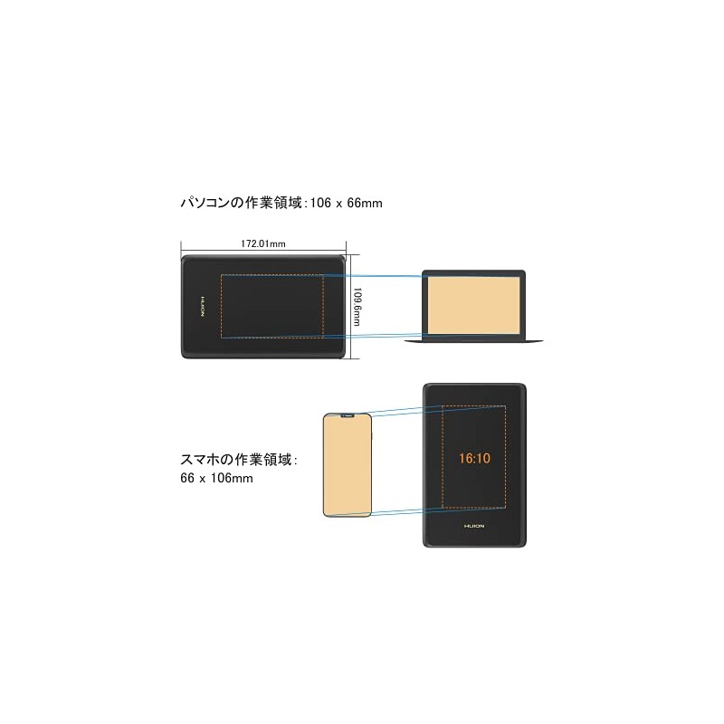 - [Product Details] Resolution: 5080 LPI Reaction Speed 300 PPS, Pen Pressure Sensitivity: 8192 Levels, Reading Height: 0.4 inches (10 mm), PC Working Area: 4.1 x 2.6 inches (106 x 66 mm), Portable Work Area: 2.6 x 4.1 inches (66 x 106 x 7 mm), Weight: 3 x 1 x 105 mm), Easy to carry. 4 rubber non-slip backing to keep your tablet stable while drawing
