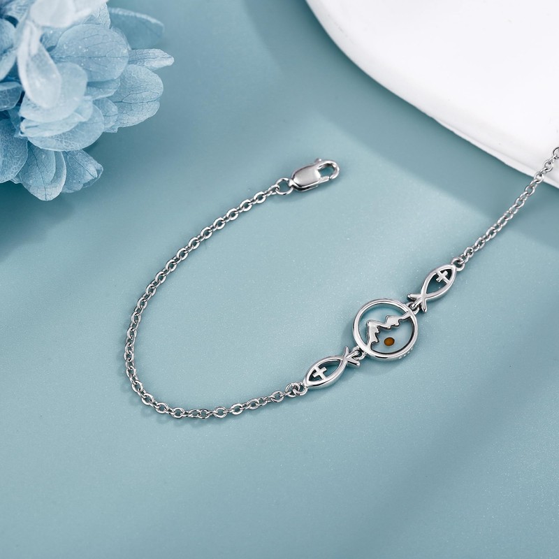 HUKKUN Mustard Seed Bracelet 925 Sterling Silver Mustard Seed Bracelets for Women Jesus Fish Christian Religious Jewelry Gifts for Women