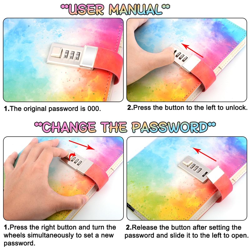 - You have chosen our diary with lock. We hope you like it. If you do not like it, you can return it and receive a full refund. Do you have password problems? Don't worry, we will be happy to help you. Opening the diary and changing the password are no problem for us. Your satisfaction is our goal