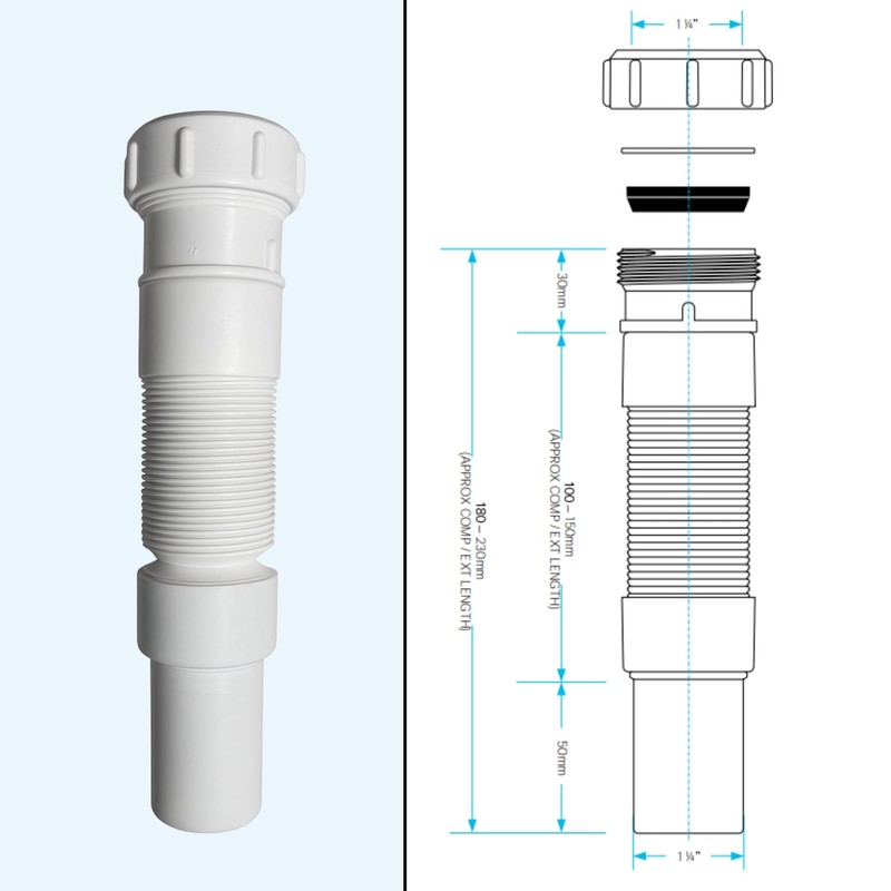 - Universal Waste Pipe Connector: Works as a flexible connector or adapter — fits most UK domestic waste systems for basins, sinks, and traps.