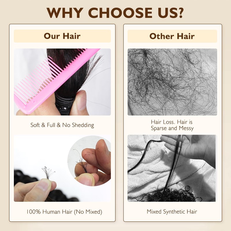 - Human braiding hair for boho braids: Utilisation plus large. Les cheveux bouclés humains offrent une grande polyvalence. Not only suitable for Bohemian Braids, Knotless Braids, Boho Locs, and Box Braids. But also allowing easy styling for different fashion-forward looks