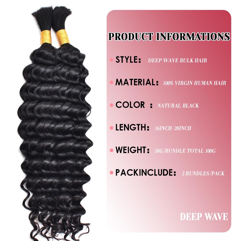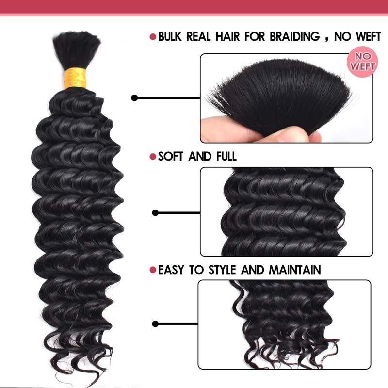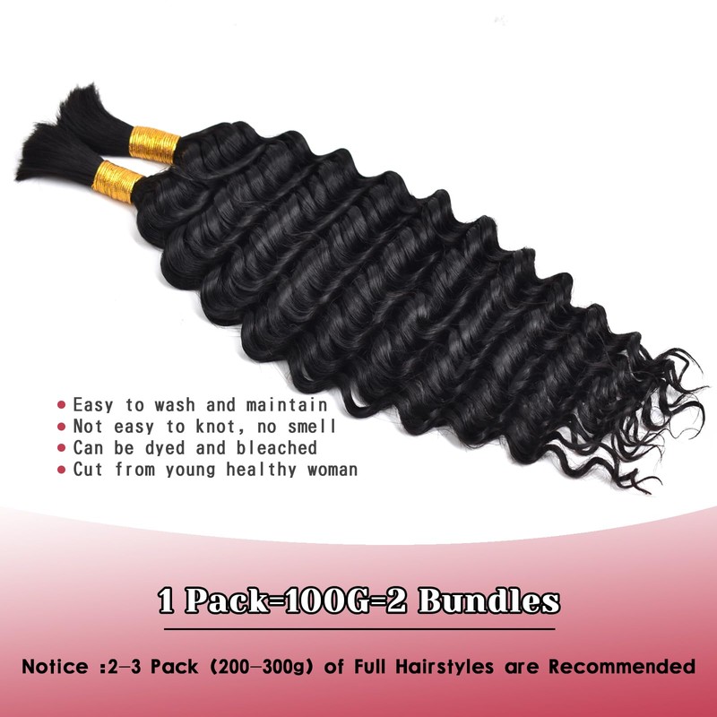- 🌹【Premium Quality Materials】Deep wave bundles Human Hair Braiding Hair for Boho Braids use 100% unprocessed 10A Brazilian virgin human hair, NO WEFT Free From Chemicals, Odors, And Is Clean And Soft. Natural And Healthy,Soft And Elastic, Full And Dense.easy styling for different fashion-forward looks.