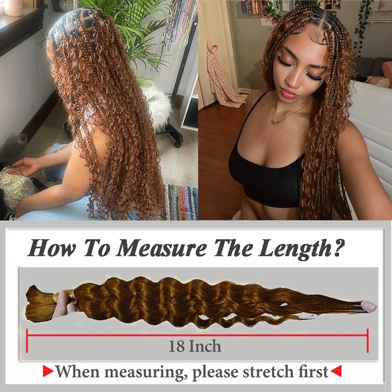 - A Wide Variety Of Styling Use With Deep Wave Bulk: No Weft Human Hair For Braiding Auburn Ginger, Can Be Used To Make Bohemian Braids, Knotless Braids, Locs And So On. Suitable For Date, Travel, graduation And Birthday