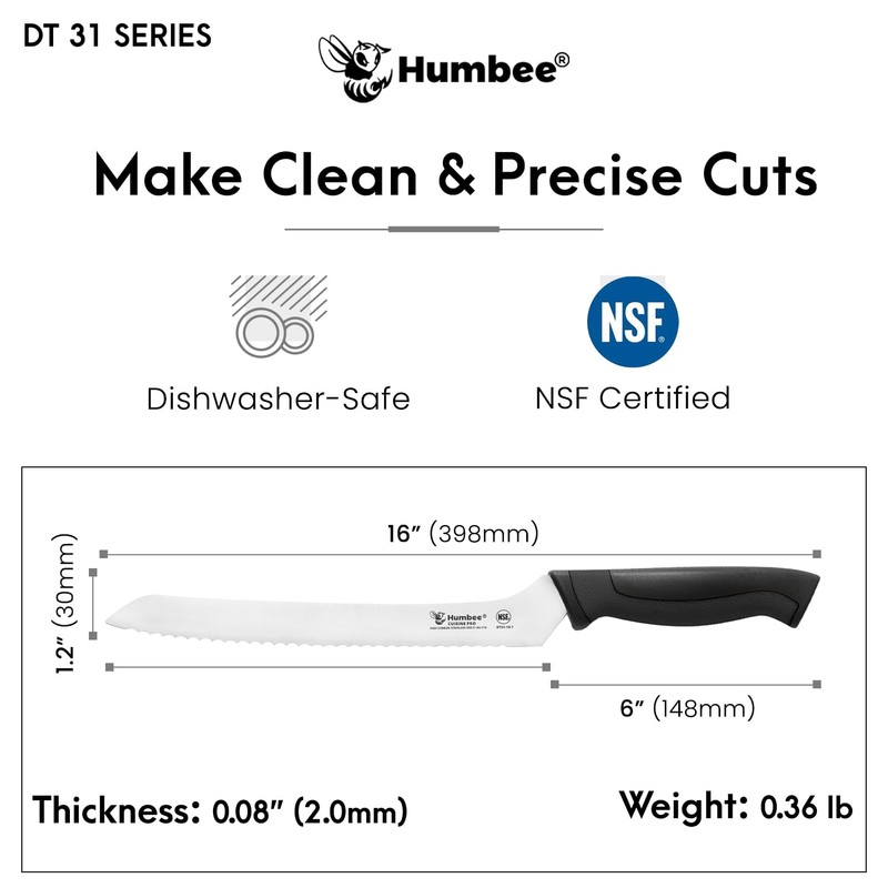- NSF Certified: Our bread knives are NSF certified, ensuring they meet the highest standard of quality and safety in the culinary industry. Enjoy peace of mind knowing you're using a knife trusted by professionals.