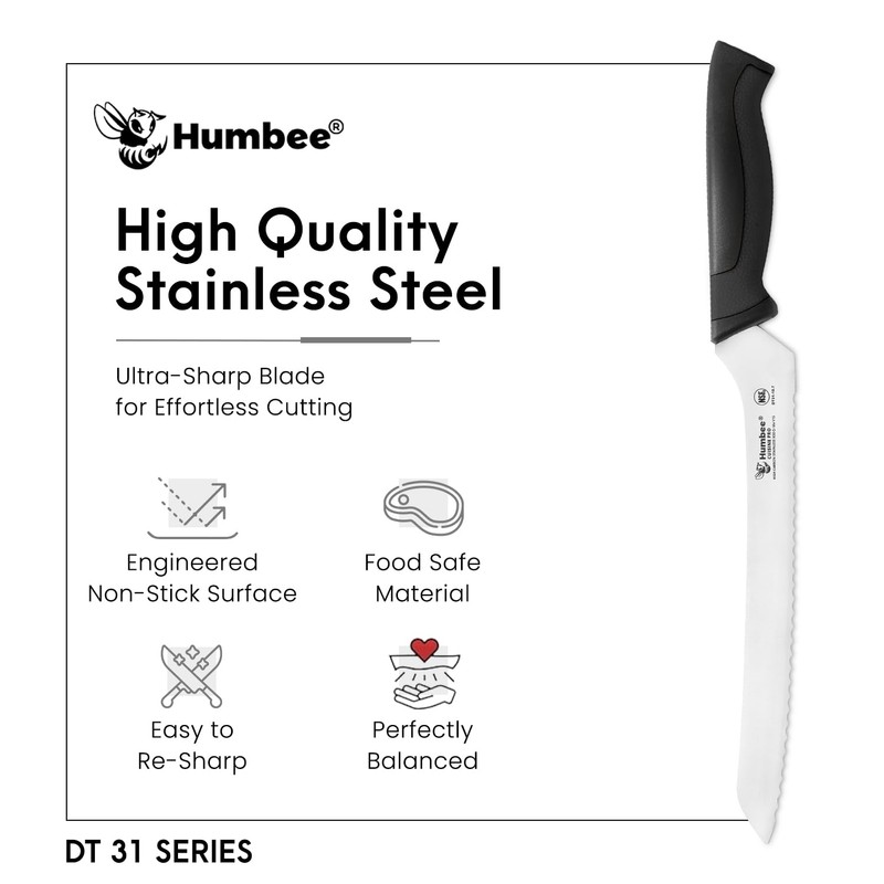 Humbee 10-Inch Offset Bread Knife with Width Wave Teeth (Serrated), Black, DT-31 Series
