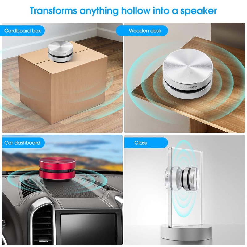 - Different Surfaces Different Sounds-- HumBird uses bone conduction technology to give you a DIY customization sound experience. You can test and enjoy different sounds by putting it on different smooth surface, like mirror, guitar, Kraft box, plastic storage box, photo frames, sports headphones or even dashboards can provide you various sound effects. Easy to operate. Turn it on, and then connect the bluetooth, the speaker will work.