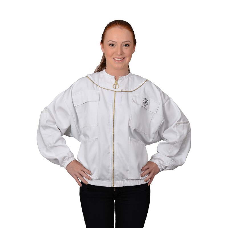 - Polycotton beekeeper jacket with self-standing round veil, heavy duty brass zippers, durable double stitched pockets and a luxurious canvas carry bag