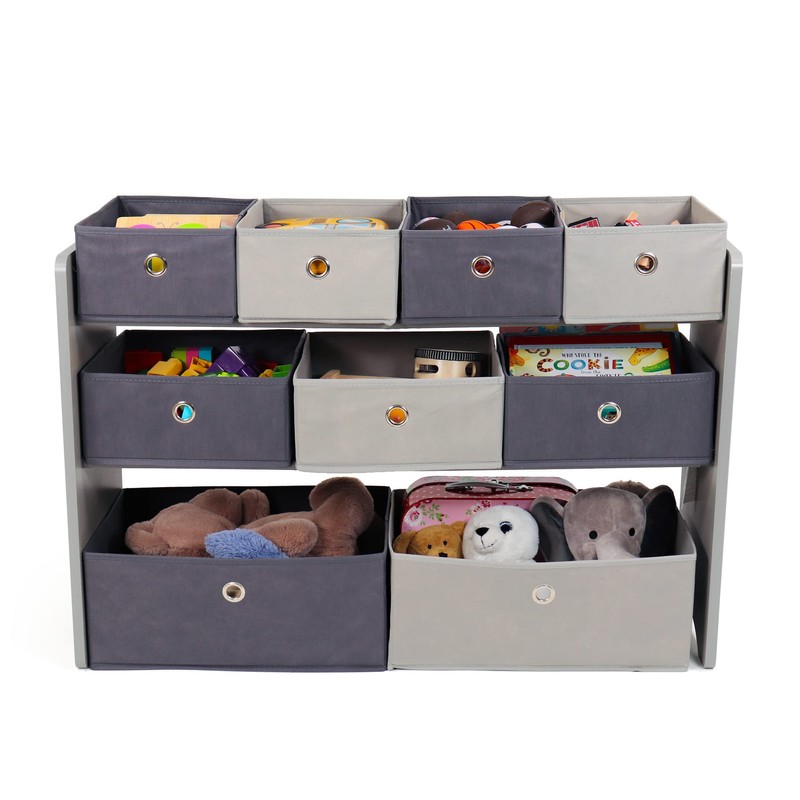 Humble Crew Kids Toy Organizer with 9 Storage Fabric Bins, Grey