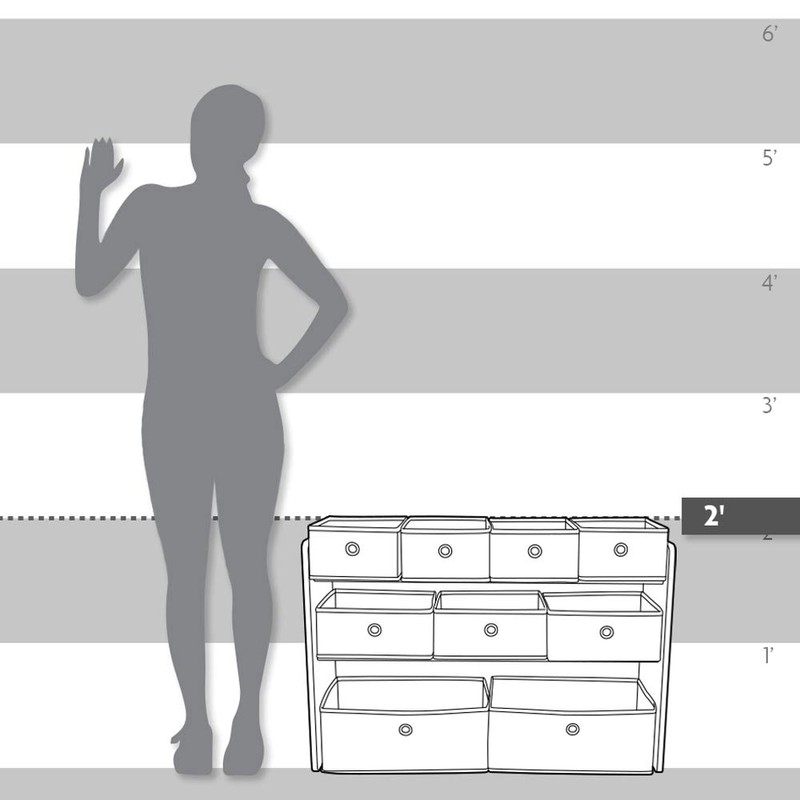 - 9 removable and collapsible fabric toy storage bins for playtime and easy clean up.