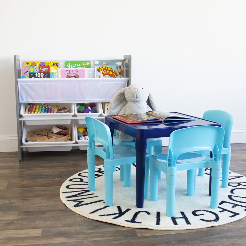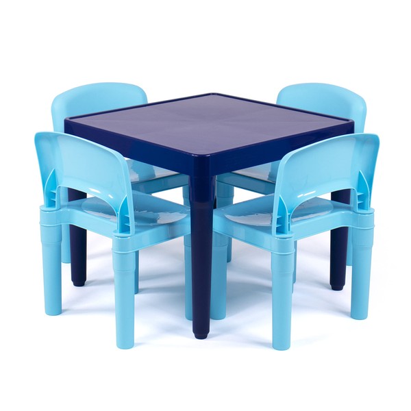 Humble Crew, Multi-Blue Kids Lightweight Plastic Table and 4 Chairs Set, Square