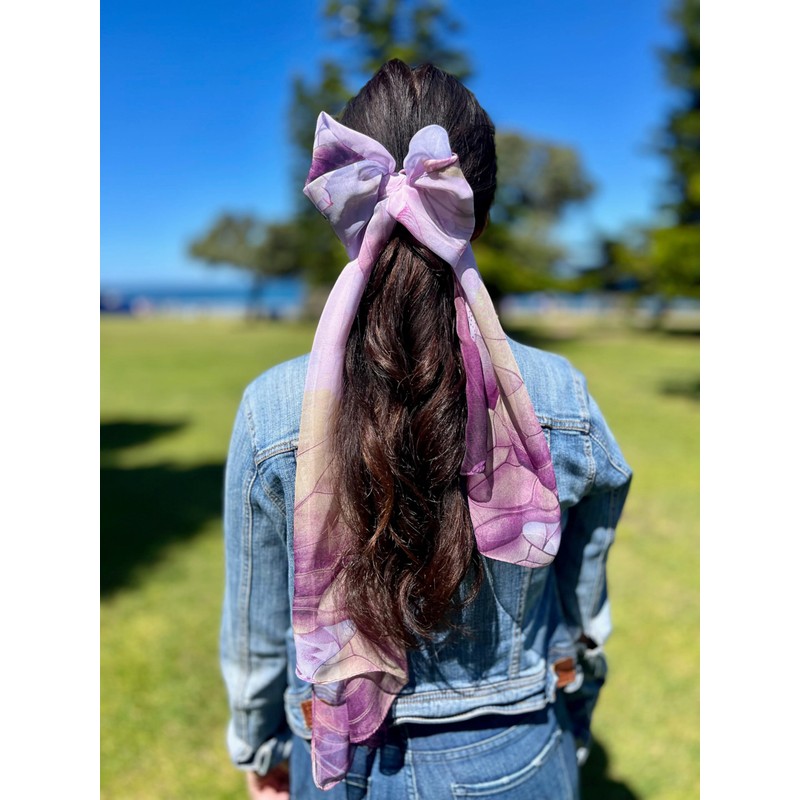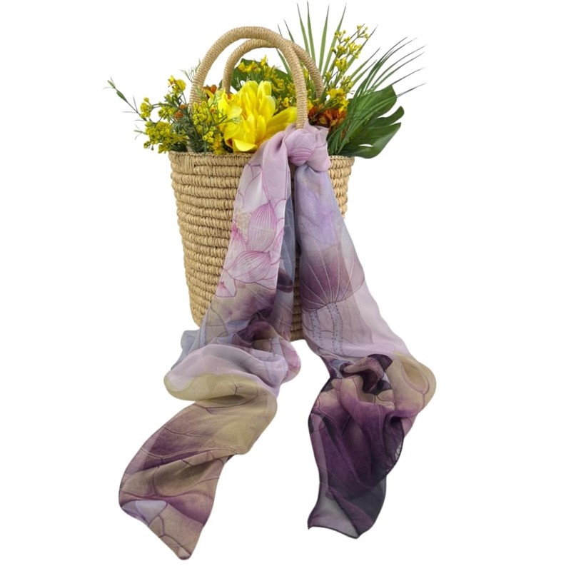 Humble Hilo Pattern Chiffon Scarf Sheer Lightweight Headband Accessory for Women (Water Lilies, Lavender)