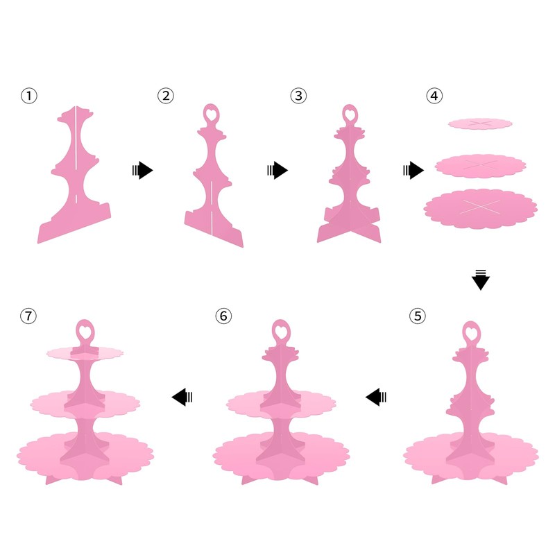 2.3-layer foldable design easy to store and carry. Pink cupcake stand is made of a sturdy central stand and 3 round paper discs. Even little kids can easily install the cupcake stand in a few minutes according to the instructions.