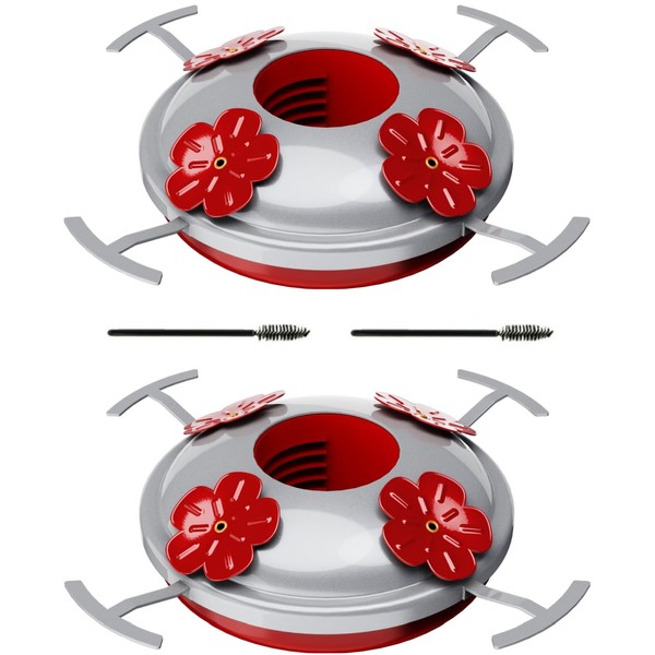 - THE BASE INCLUDING: A metal silver cover with red metal flower, hummingbird perches and feeding ports; A leakproof gasket and a red plastic bottom