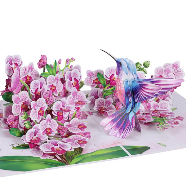 - Exquisite 3D Design: A lifelike hummingbird sipping nectar from vibrant purple orchids springs to life when the card is opened, creating a breathtaking scene that will captivate the recipient.