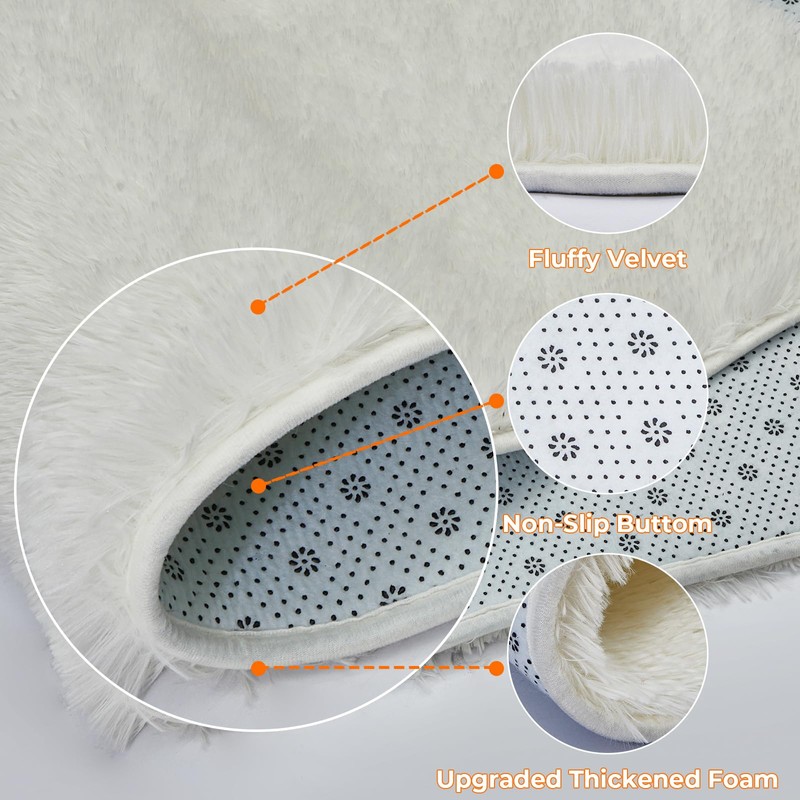 1. This furry area rugs are made of 1.5inch high pile synthetic microfiber, make your family feel warm and comfortable during use.
