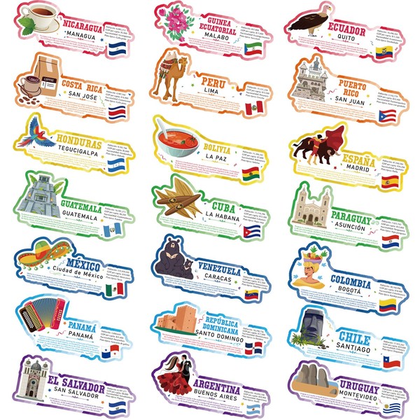 - Versatile Multipack Offering: the package includes a set of 21 Spanish language country posters, each of different style; A complete set featuring many Spanish countries, are suitable for both primary and secondary home education, providing a nice opportunity for learning Spanish; Similarly, with this diverse pack, changing classroom decor becomes a breeze