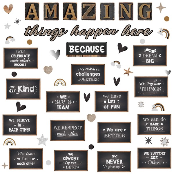 Humyoun 62 Pcs Classroom Industrial Chic Bulletin Board Decorations Amazing Things Happen Here Bulletin Board Positive Encouraging Paper Cutouts for Classroom School Elementary Home Office Wall Decor