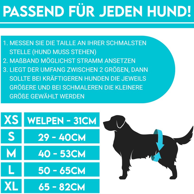 - Perfect fit: the dog trousers have three adjustment options for the best fit: adjustable waist circumference thanks to wide Velcro tabs, adjustable elastic leg waistband and press studs on the outside guarantee optimal hold.