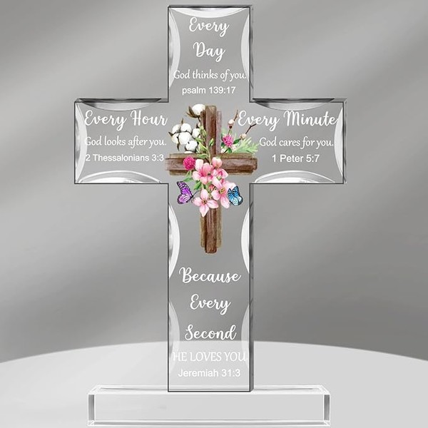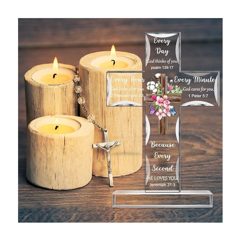 Whether as a personal keepsake or a thoughtful gift, this acrylic cross brings peace, faith, and encouragement to any space, making it a cherished addition to home decor.