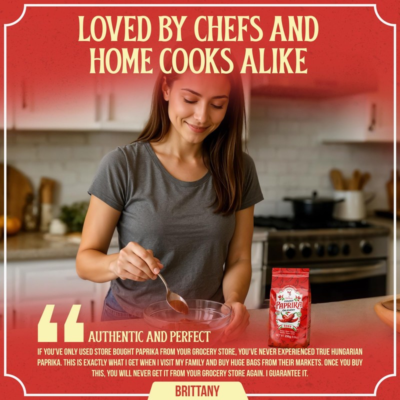 Hungarian Sweet PAPRIKA (250gr/8.9oz) Imported direct from HUNGARY! This Sweet Paprika is Imported EXCLUSIVELY by me and packaged in a paper style bag. The Paprika comes from the countryside of KALOCSA and is one of the richest in content for its Lovely Color, Taste and Aroma.