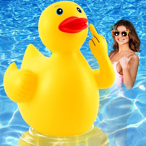 Hungdao 4 Feet Giant Inflatable Duck Huge Funny Rubber Duck Large Blow up Duck Inflatable Duck Pool Float for Summer Beach Swimming Pool Party Decoration(Joy Funny)