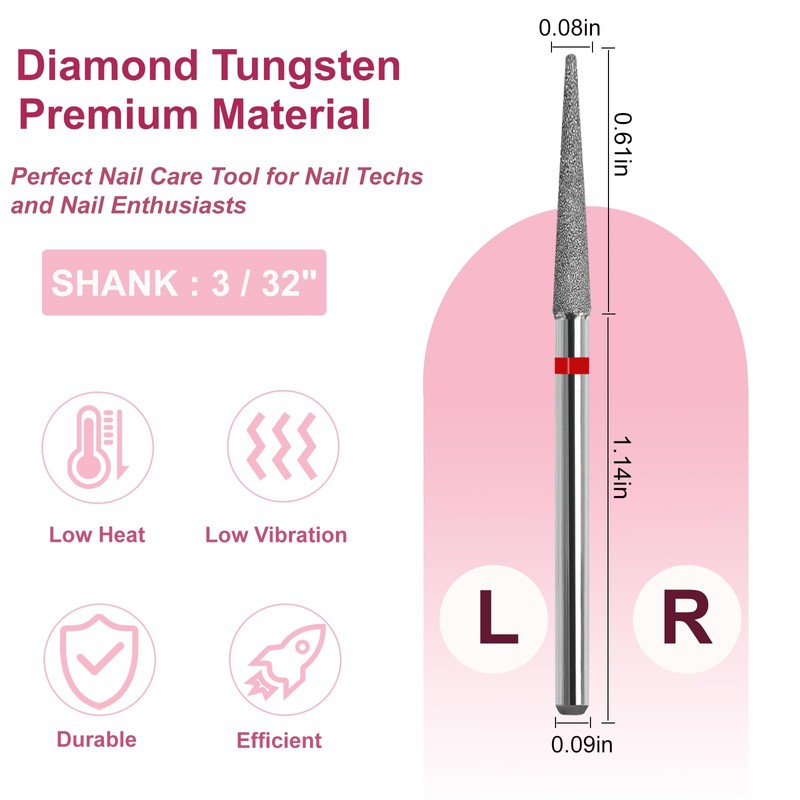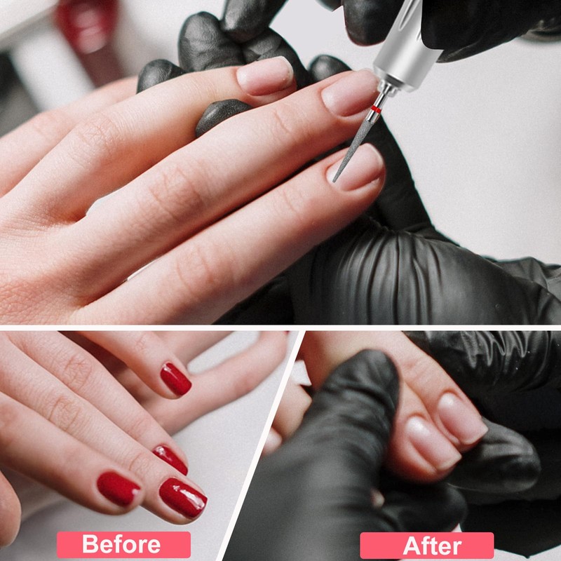 - FAST REMOVE & TIME SAVE: The nail drill bit is used to remove dead skin, polish nail shapes and nail art designs before manicures; cuts smoothly for flawless results and is easy to use. Its tapered design and fine grit size makes it easy and fast to polish any hard gel, acrylic gel, rhinestone powder or any nail design