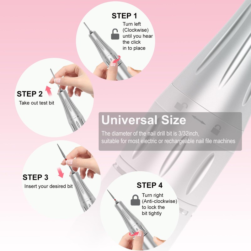 - UNIVERSAL COMPATIBILITY: The efile nail drill bits is designed to fit standard nail drills with a diameter of 3/32". This makes it compatible with a wide range of nail care tools. It is easy to use and is suitable for both natural and artificial nails. It avoids any damage to the cuticle and is perfect for anyone who wants perfect nails without the need for a professional manicure