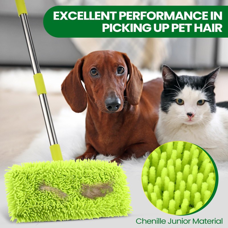 - Three Types of Fabric for Deep Cleaning: the package includes green coral fleece wet mopping cloths, which are better suited for dry use and have excellent water absorption; The light green chenille microfibers are ideal at absorbing lint or your dog's or cat's hair; The white one can effectively clean the room since it is composed of twisted fabric, which also has high water absorption and cleaning effects