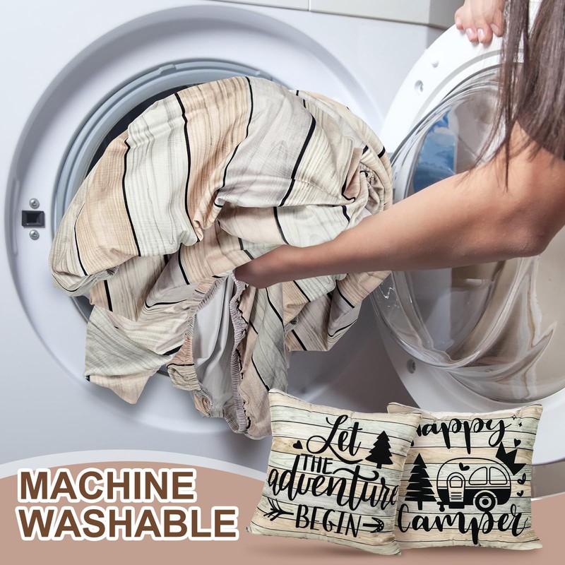 • Novelty Design: the camper dinette cushion covers adopt wood grain pattern and pillow case is printed with cute camping pattern, including camping cars and Christmas trees, injecting a dose of fun and novelty into your RV