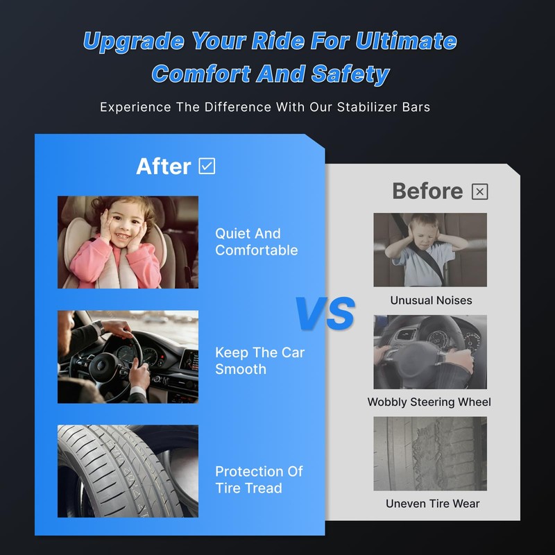 - 【Eliminate noise】 If you experience the following situations, it's time to replace the Sway bars end link: clunking sounds from the suspension on bumpy roads or during turns, body sway while driving, steering wheel pull, and uneven tire wear. Upgrading to our sway bar can resolve these issues, enhancing your driving experience. Plus, our special grease nipple design helps maintain the lubrication of the sway bar, reducing friction-induced noise and increasing driving comfort.