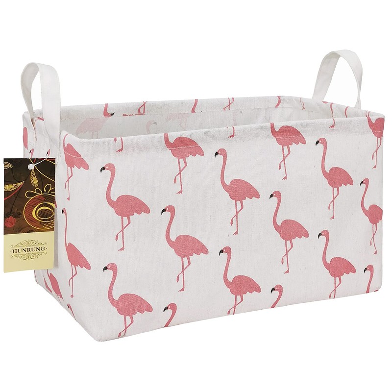 HUNRUNG Rectangle Storage Basket Cute Canvas Organizer Bin for Pet/Children Toys, Books, Clothes Perfect for Rooms/Playroom(Rectangle Flamingo)