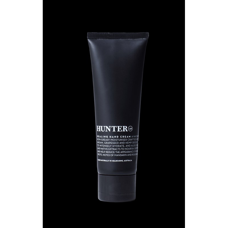 Hunter Lab Healing Hand Cream 80ml is a natural, ultra-nourishing, non-greasy travel moisturiser crafted with Argan, Grapeseed and Hemp Seed oils to intensely hydrate, and Aloe Vera and Native extracts to nourish, soften and help reduce the appearance of dark spots and fine lines.
