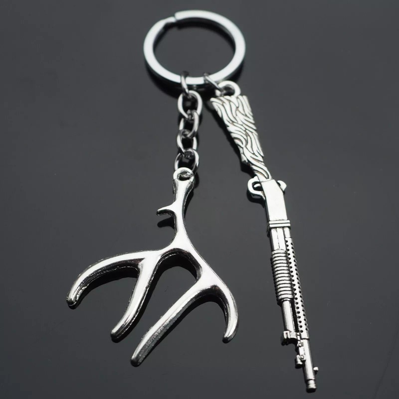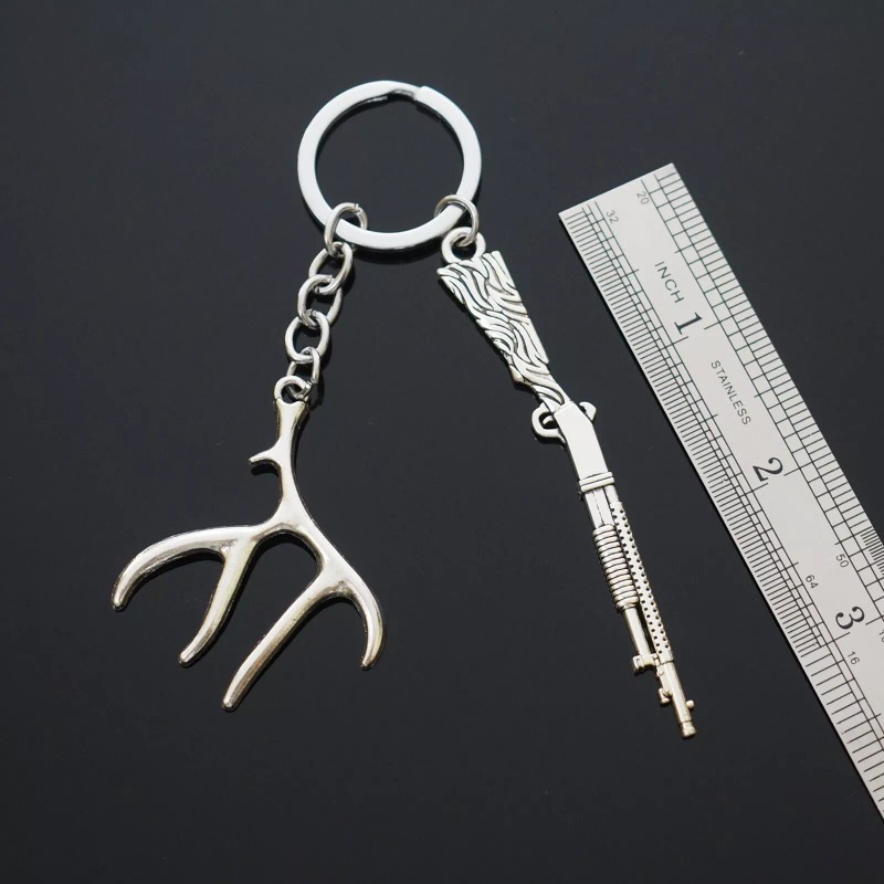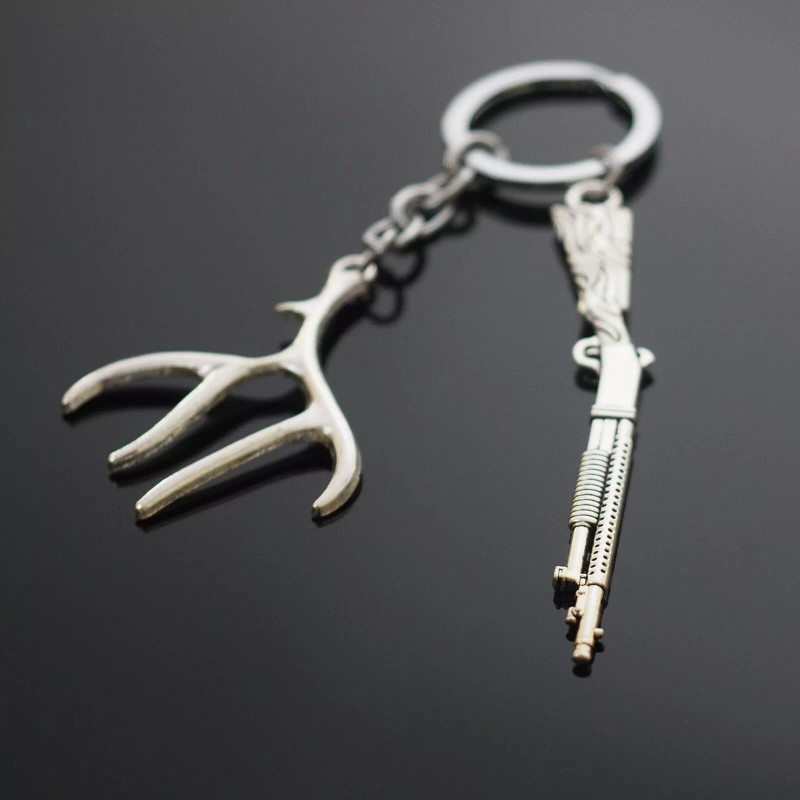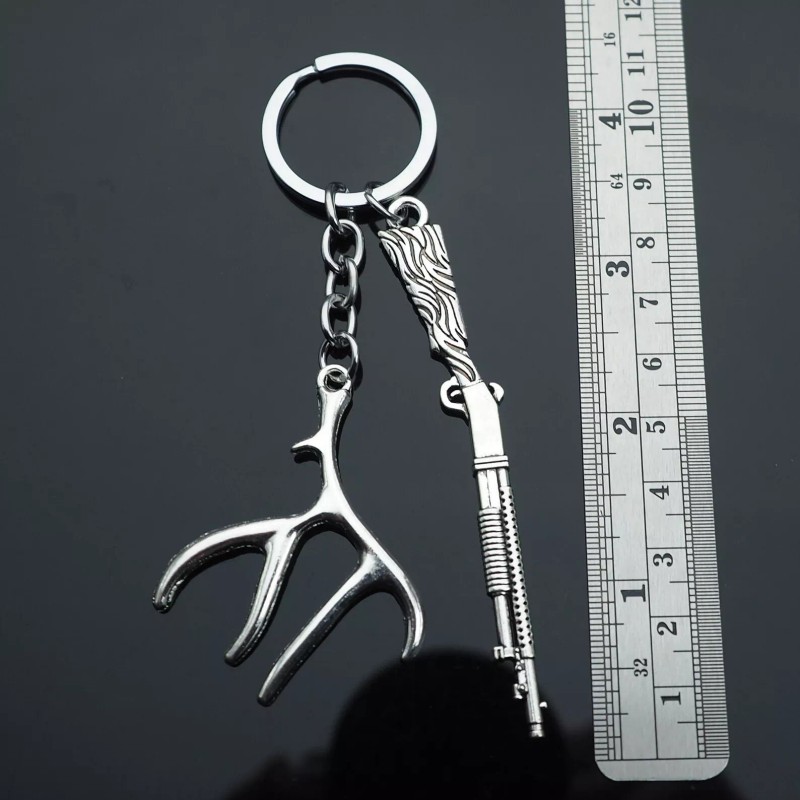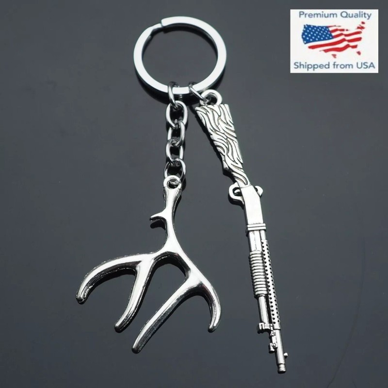 Hunting Rifle & Deer Antler Themed Shotgun Charms Keychain Key Ring Chain Gift
