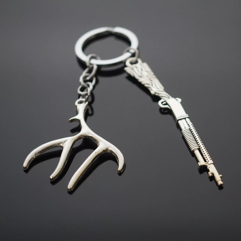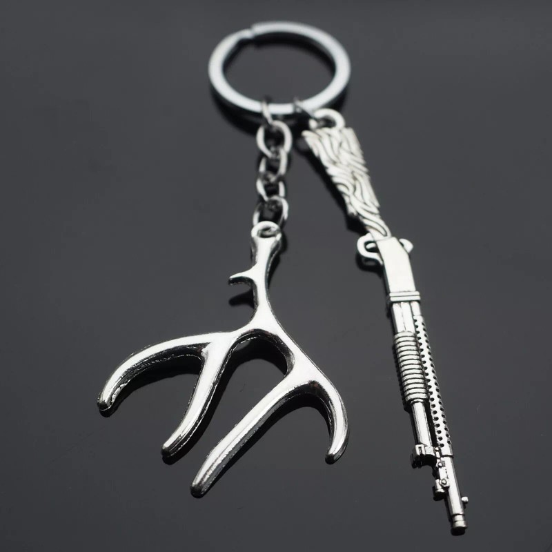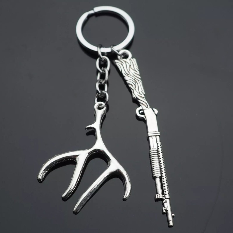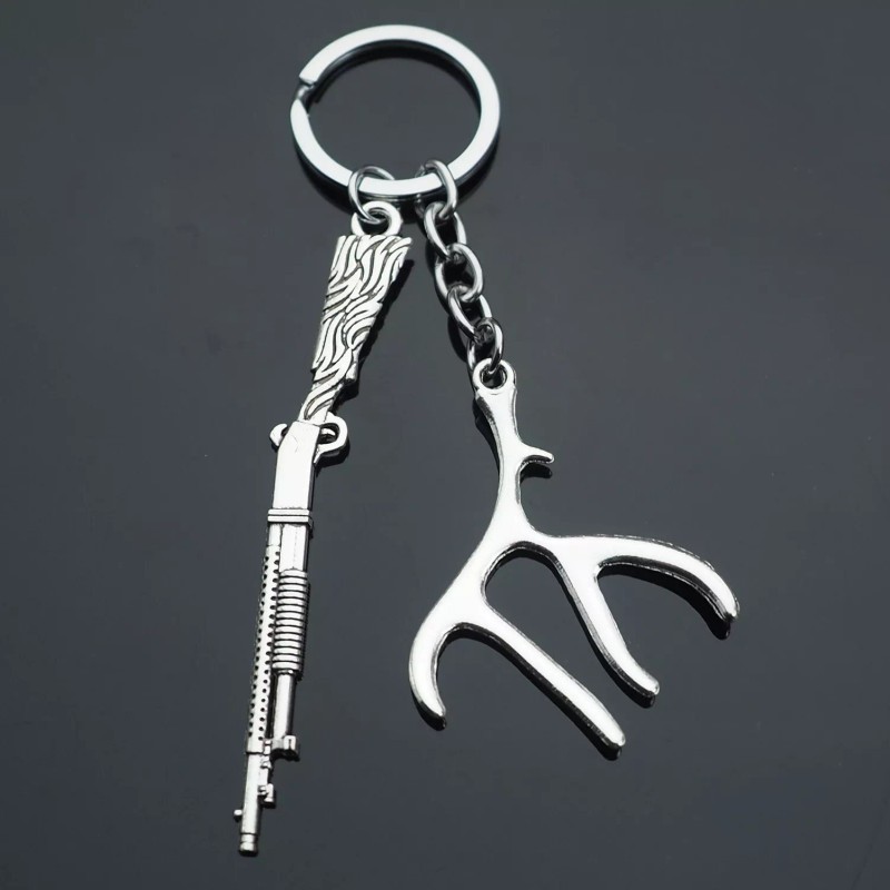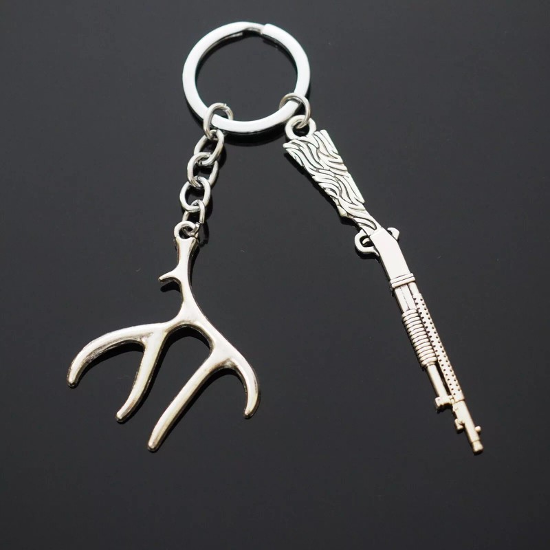 Hunting Rifle & Deer Antler Themed Shotgun Charms Keychain Key Ring Chain Gift