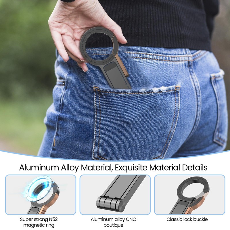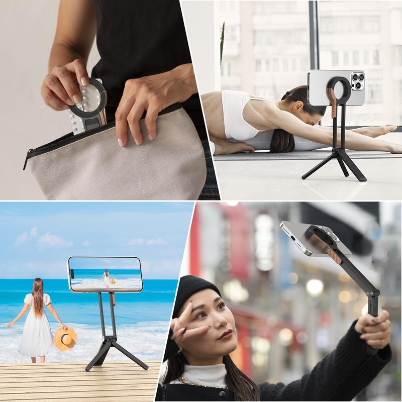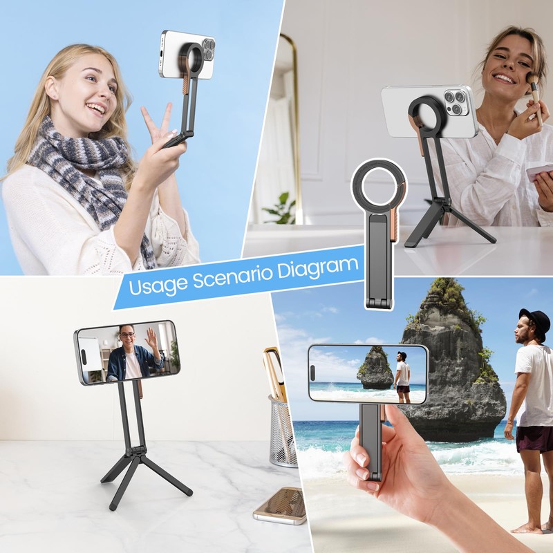 - Portable Design, Flexible AngleThis mini magnetic phone tripod adopts a foldable design and can be easily put into your pocket (pocket tripod), which is very suitable for use when going out; it can meet your diverse needs such as watching dramas, watching videos, taking photos and recording videos with your mobile phone, making video calls, reading, etc. at any time.